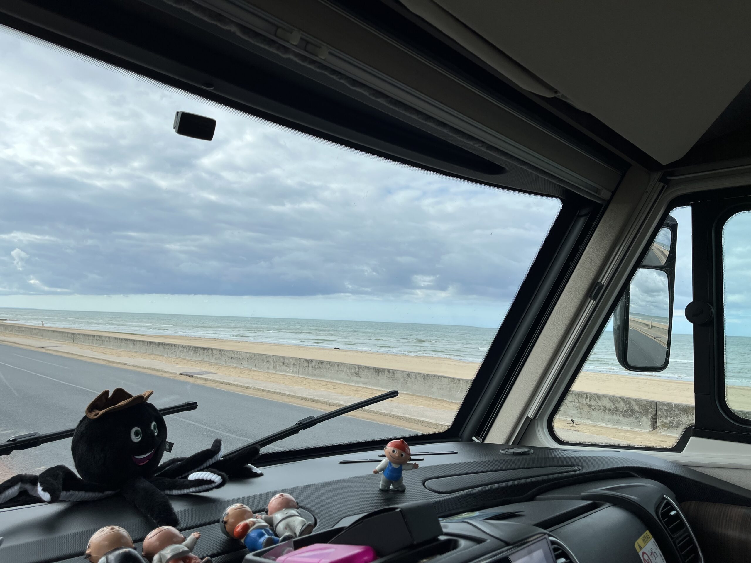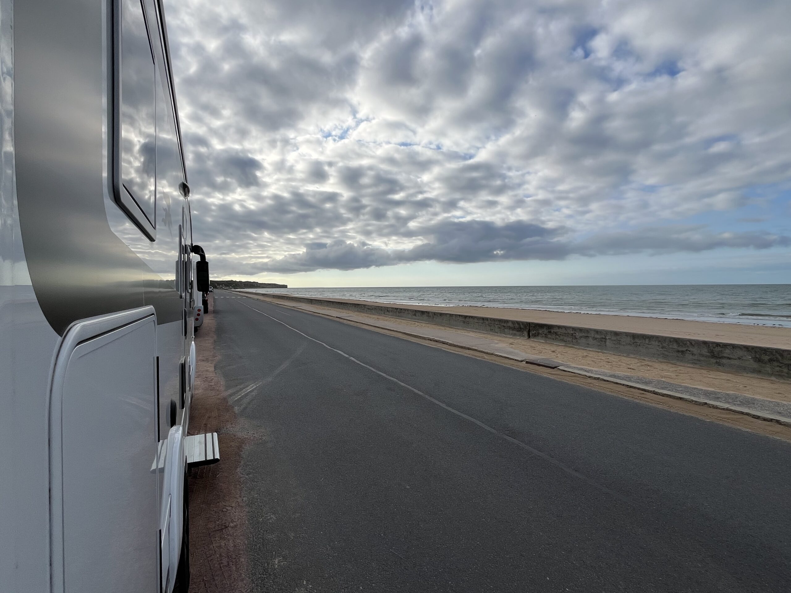 Viel Erinnerung und historisches gibts zu sehen und zu spüren. Genau heute vor 80 Jahren und einem Monat war der D-Day, die Landung der Allierten in der Normandie. Heute ist Omaha Beach ein sehr langer, breiter schöner Strand. Man darf zwar nicht über Nacht mit dem Womo stehen, wir machen es trotzdem direkt an der Promenade am Strand. Ein schöner Sonnenuntergang mit Meeresrauschen ist der Lohn.