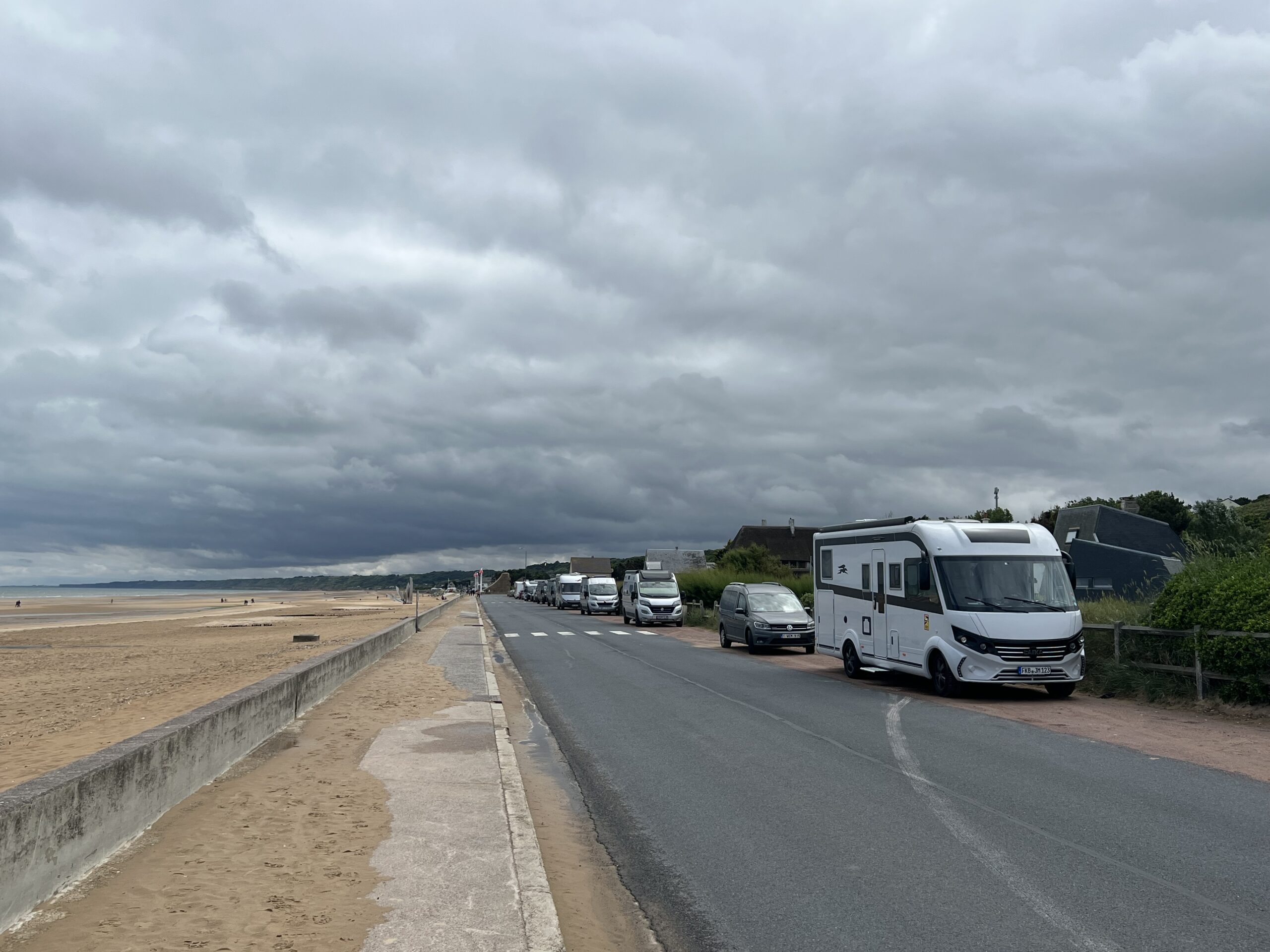 Freitag Abend gings los. Mit Zwischenstop bei der Verwandschaft und Übernachten im Bergischen Land in einem Ort dessen Name ich schon vergessen habe. Samstag dann sehr früh gehts weiter Richtung Köln, in Frechen dann Tanken und Frühstück. Weiter durch Belgien bis Amiens. Wir hätten uns Amiens gerne angeschaut, Übernachten aber nur ein Tag, da es am nächsten Tag nur regnete. Wir fahren dann weiter Richtung Normandie nach Vierville-sur-Mer und stehen direkt am Strandabschnitt Omaha Beach.